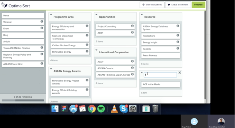 Selama workshop yang sama, peserta terlibat dalam Uji Pemilahan Kartu, mengatur kartu-kartu menu navigasi berdasarkan preferensi mereka. Proses ini membantu kami merancang Arsitektur Informasi yang lebih efektif, sejalan dengan harapan pengguna.