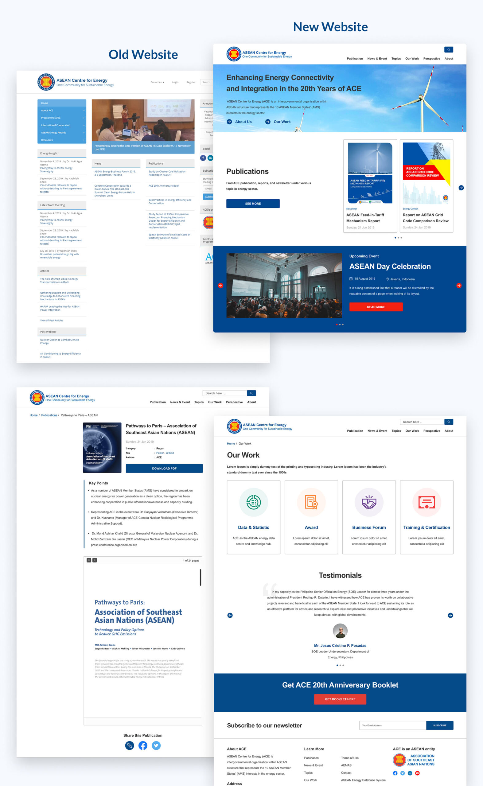 ASEAN Centre for Energy (ACE) merupakan organisasi antarpemerintah yang mengemban peran penting dalam mewakili kepentingan 10 Negara Anggota ASEAN (AMS) di sektor energi. Sebagai pusat data dan pengetahuan, ACE telah menggunakan website-nya, www.aseanenergy.org, sebagai platform untuk menyebarkan informasi mengenai kegiatan dan publikasi. Namun, menyadari kebutuhan akan website yang lebih ramah pengguna dan mudah diakses, ACE memulai perjalanan perancangan ulang kehadiran digital mereka.